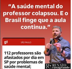 Enquanto a lousa é apagada, o grito silencioso do professor ecoa. Enquanto o sino toca, milhares se calam — esgotados, sobrecarregados, adoecidos. No Estado de São Paulo, 112 professores são afastados por dia por problemas de saúde mental. Sim, por dia. Mas esse não é um problema de um estado. É um colapso nacional que […]